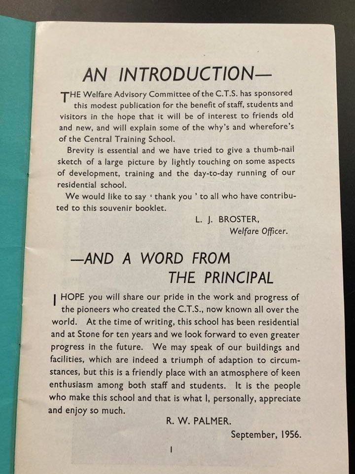 A booklet dated 1956 describes the Central Training School. Price 9d.